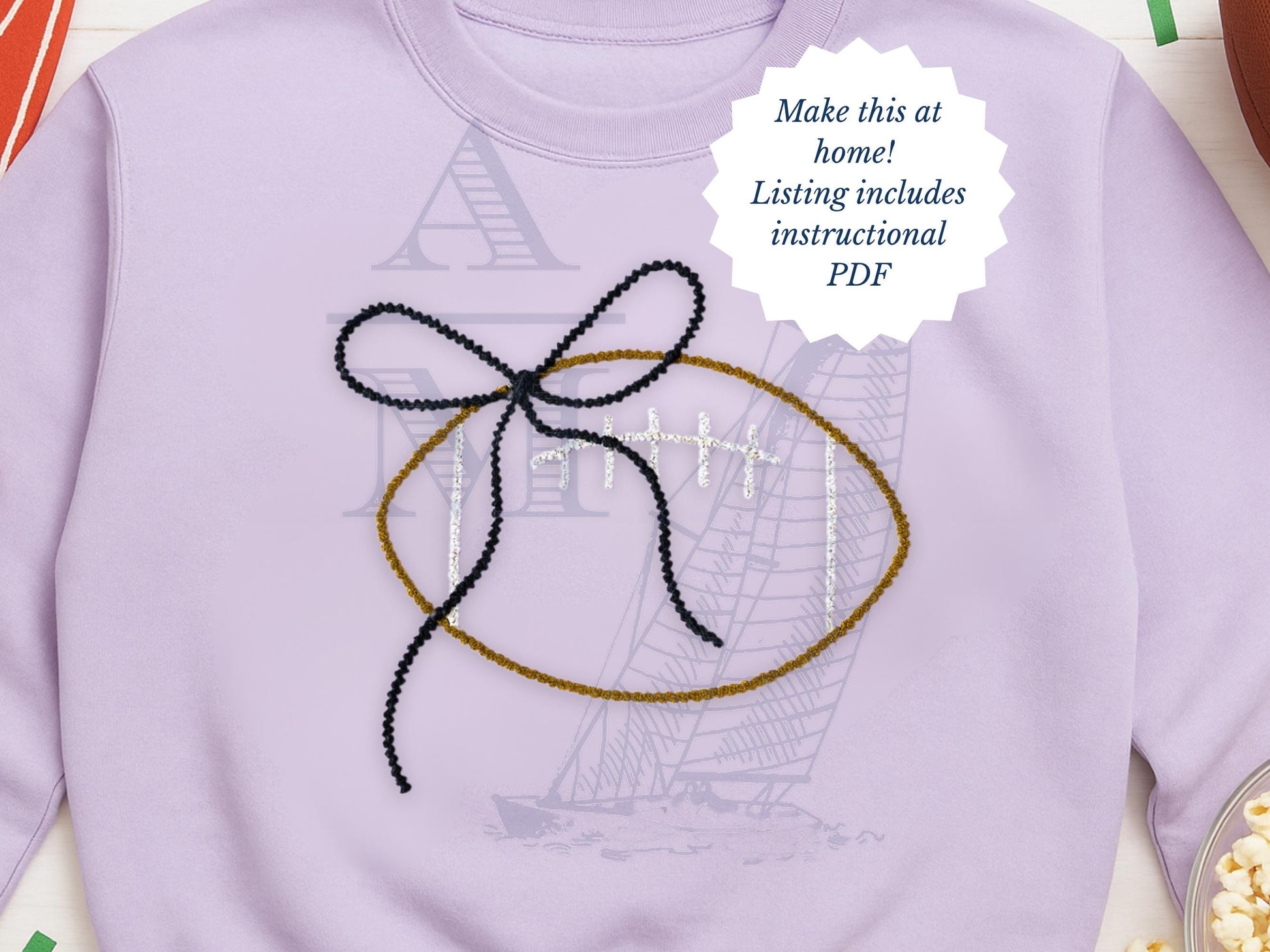Add a playful and trendy touch to your handmade projects with this adorable Chenille Yarn Football Bow Applique Embroidery Design! Perfect for customizing sweatshirts, hats, bags, and more, this versatile digital file allows you to create eye-catching accessories that stand out. Whether you‘re enhancing sports-themed apparel or adding a fun decorative element to your crafts, this design is ideal for all embroidery enthusiasts.