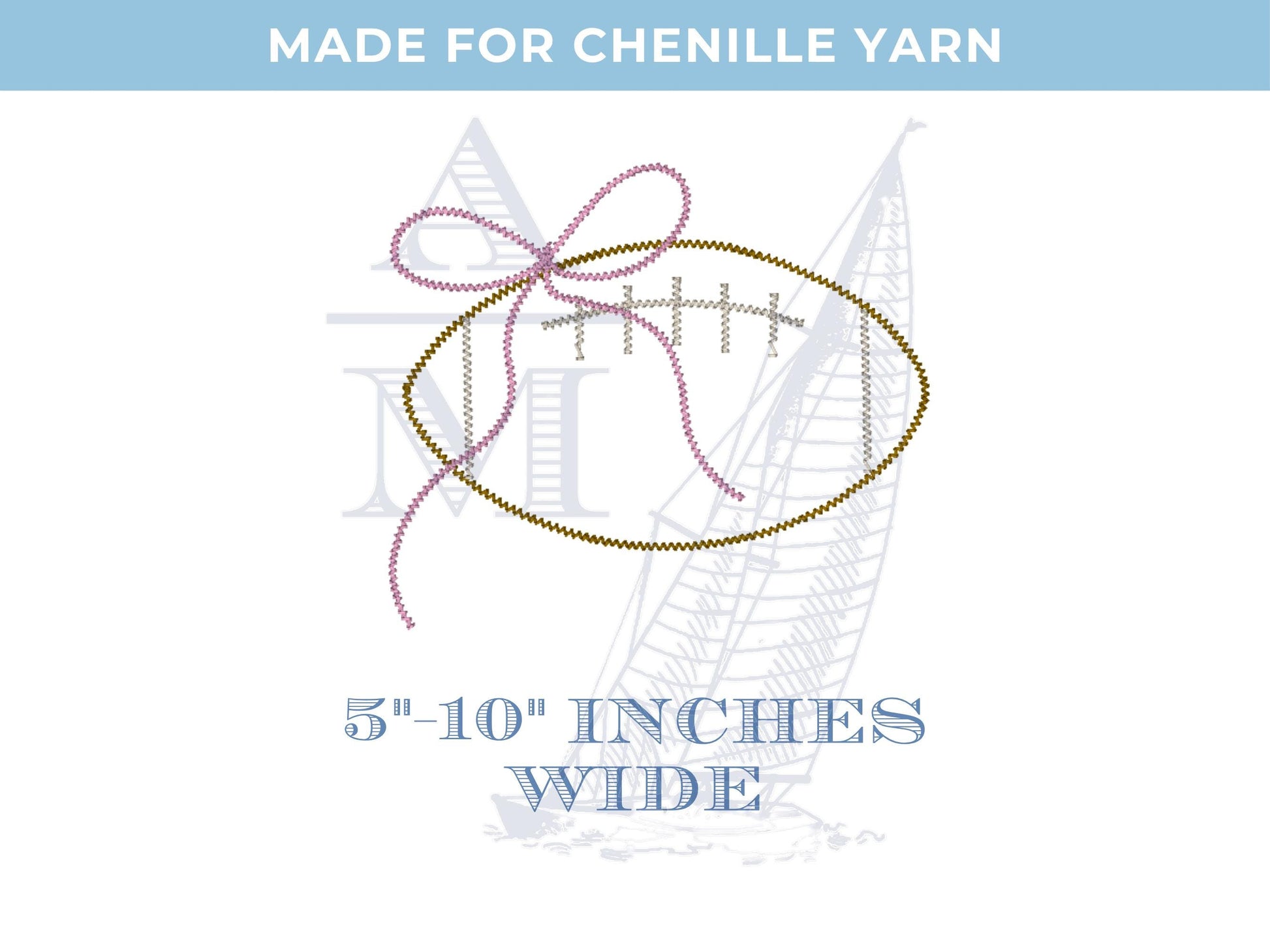 Chenille Yarn Football Bow Applique Embroidery Design, Digital File, 6 Sizes for Sweatshirts, Hats, Bags, Crafts, Trendy Decorative Football