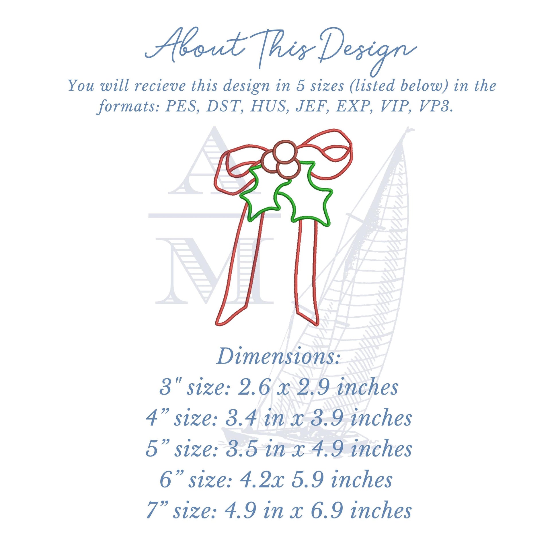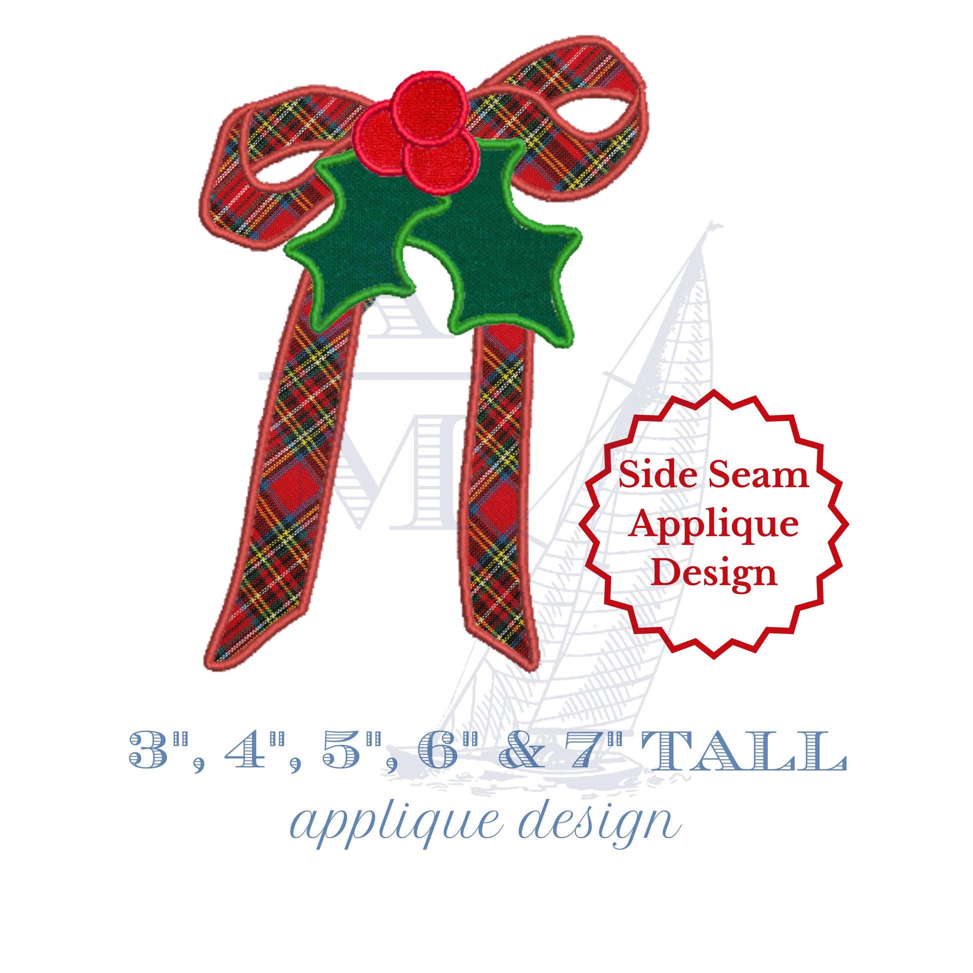 Christmas Holly Side Seam Bow Applique Embroidery Design, 5 Sizes, Great for Sweatshirts, Machine Embroidery Digital File