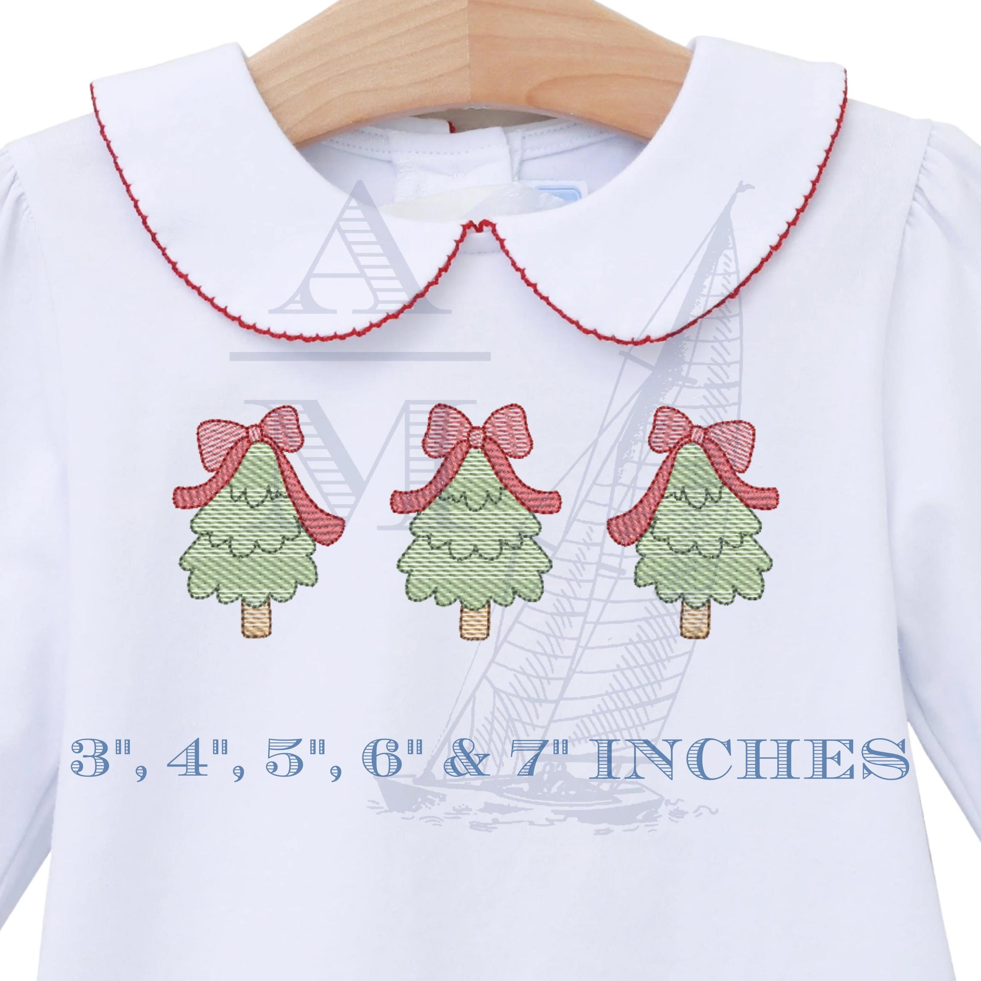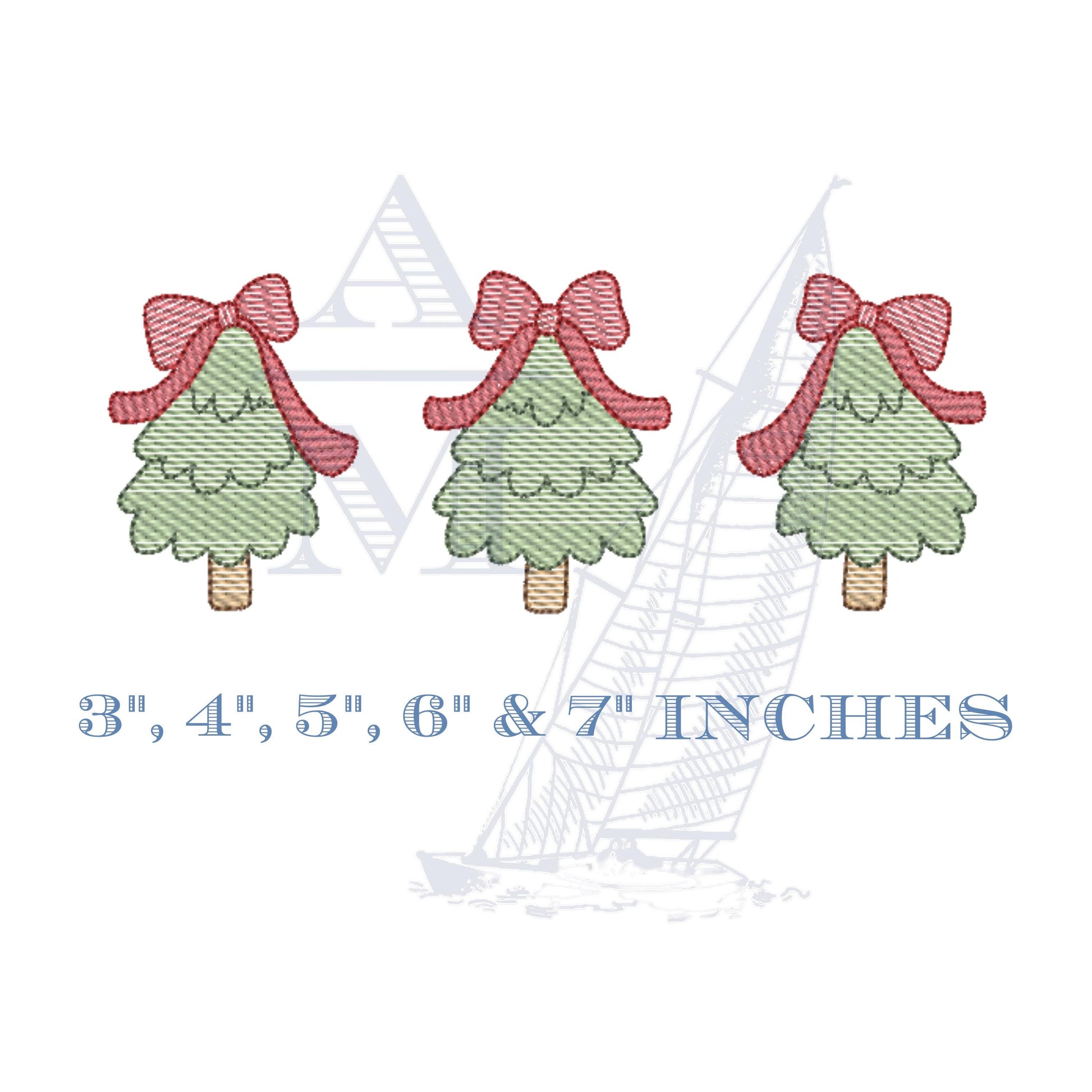 Christmas Trees with Bows Embroidery Design Trio, Holiday Christmas Tree Digital Files, 5 Sizes for Xmas Projects, Machine Embroidery