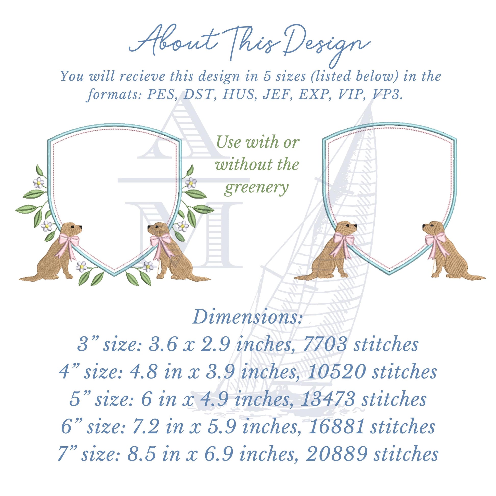 Girl Dog Embroidery Crest Monogram Frame Design for Machine Embroidery, 5 Sizes, Digital Design File
