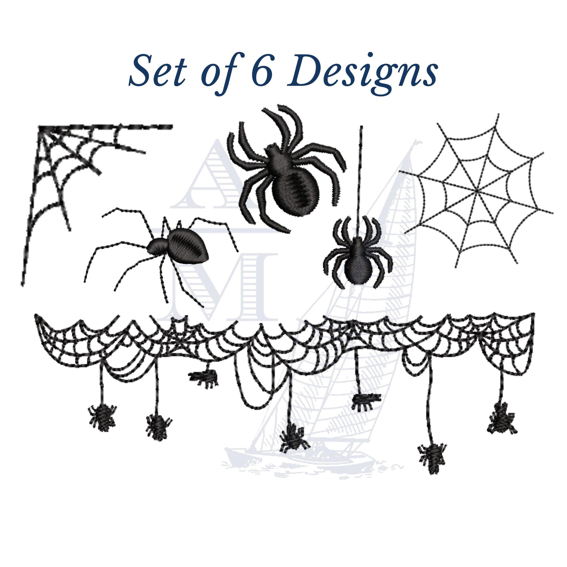 Halloween Spider Web Embroidery Design Set of 5 Add on Designs and 1 Frame, 3 sizes each