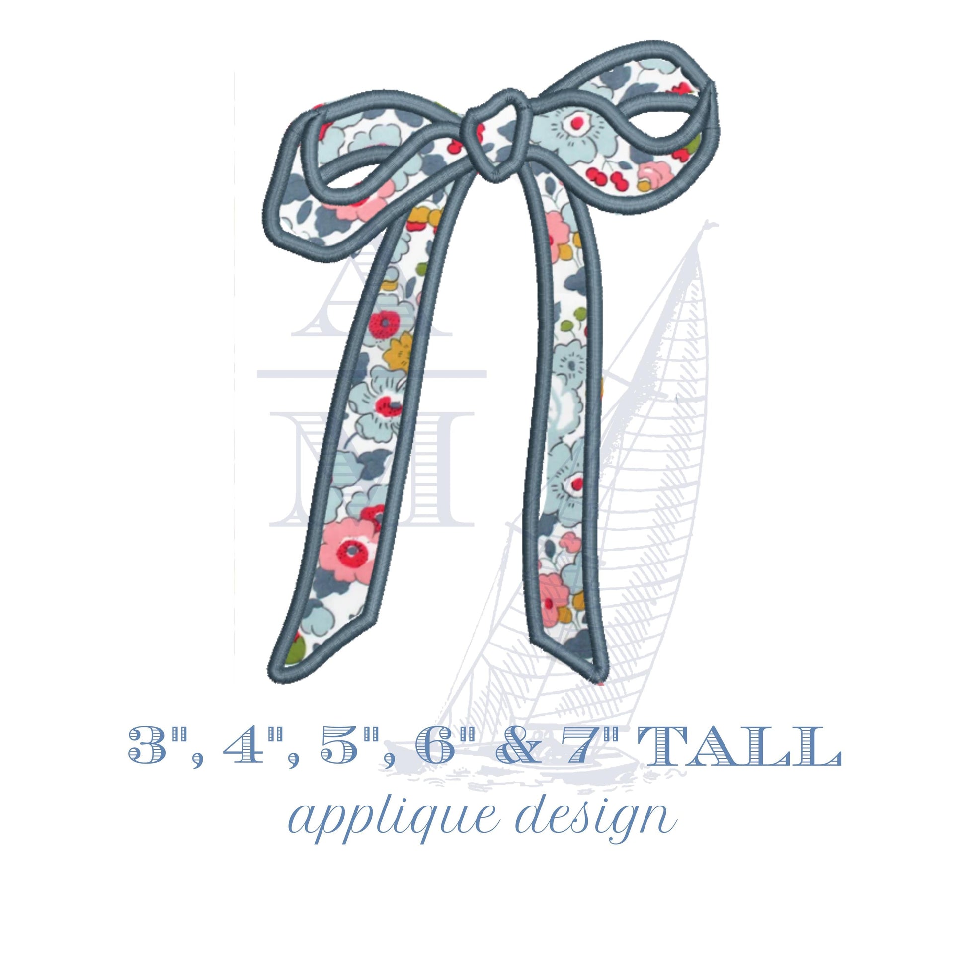 Hand Tied Style Side Bow Applique for Sweatshirts and Tops, Trendy Embroidery Design File, Satin Finish 3", 4", 5", 6", 7" Tall