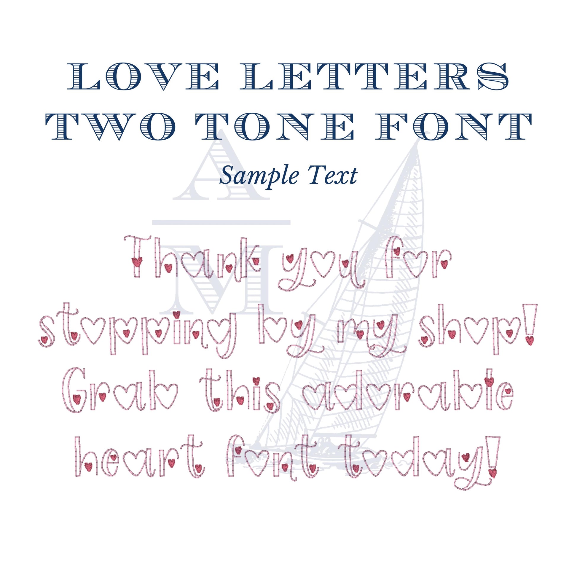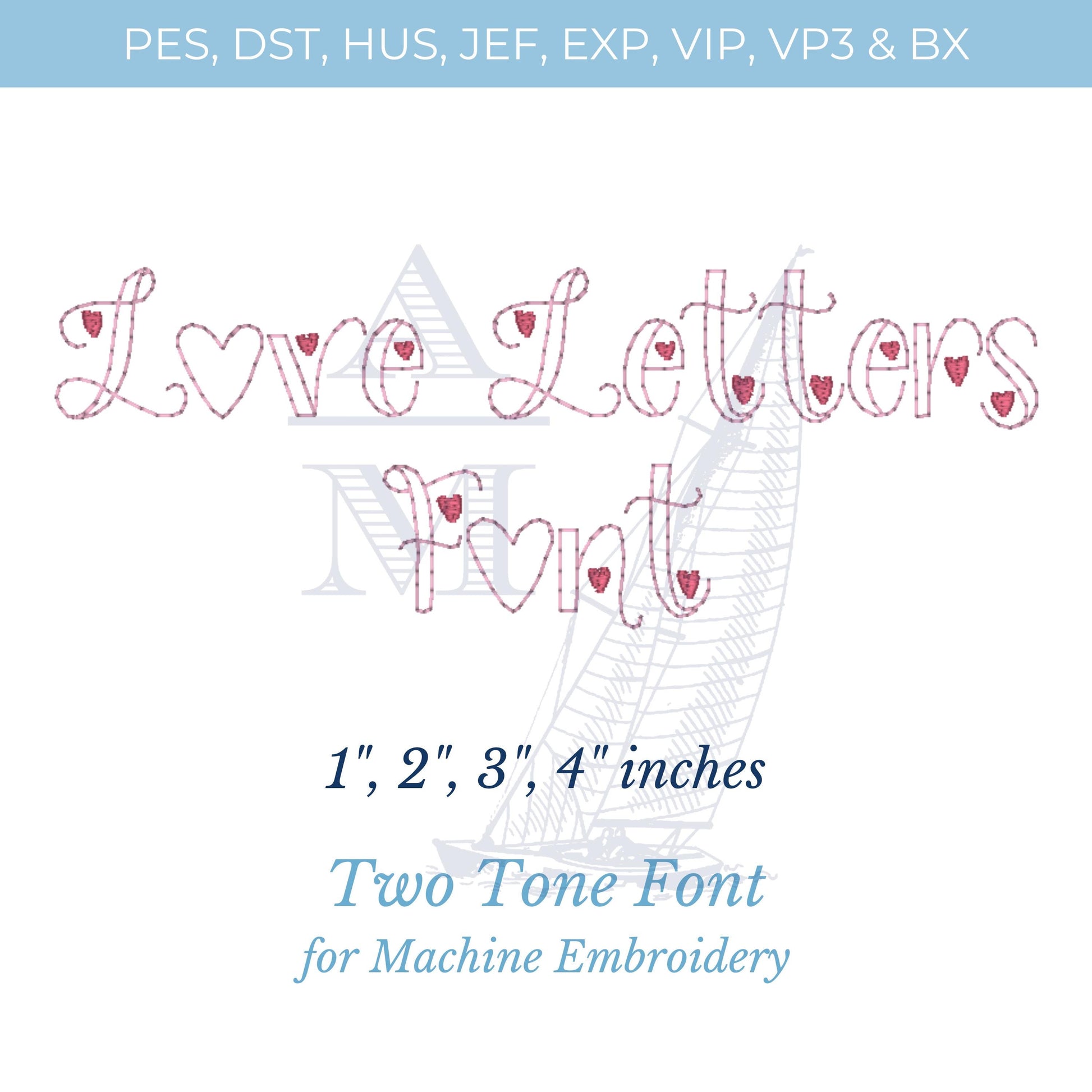 Heart Font for Machine Embroidery, Love Notes by Annapolis Monograms BX included, Two Tone Valentines Day Font, 1"-4", Digital File