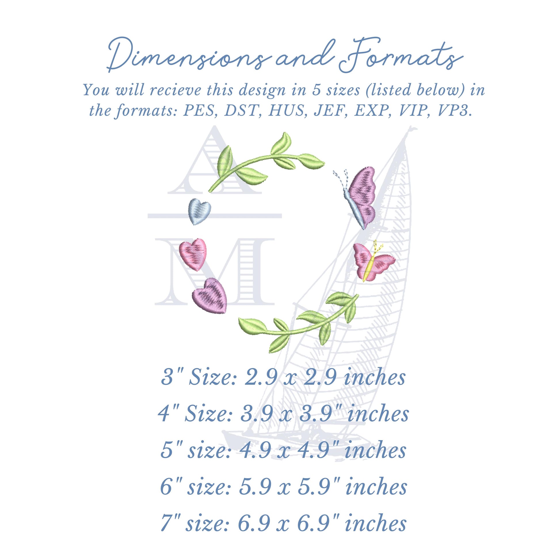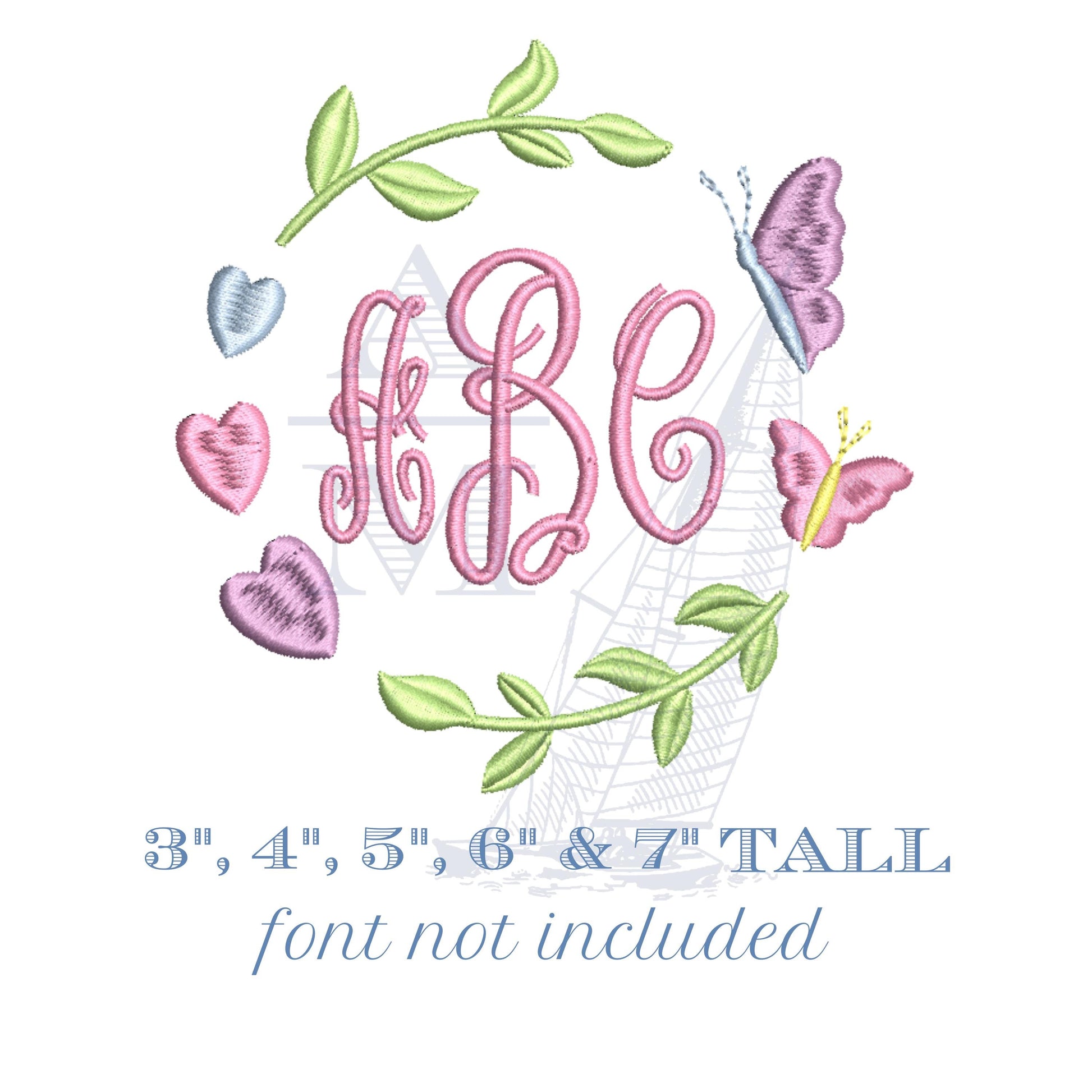 Add a flutter of fun to your crafts with my new Butterfly & Hearts Embroidery frame! This fun, versatile design features charming butterflies dancing amidst delicate hearts and vines. Perfect for sprucing up tote bags, pillows, or clothing, this frame sparks creativity for both new and seasoned embroiderers. Let your imagination soar and your stitches shine as you create delightful, personalized pieces. You will be able to download a zip file after purchase. NOTE: The monogram font shown in the listing photo does NOT come with the frame.