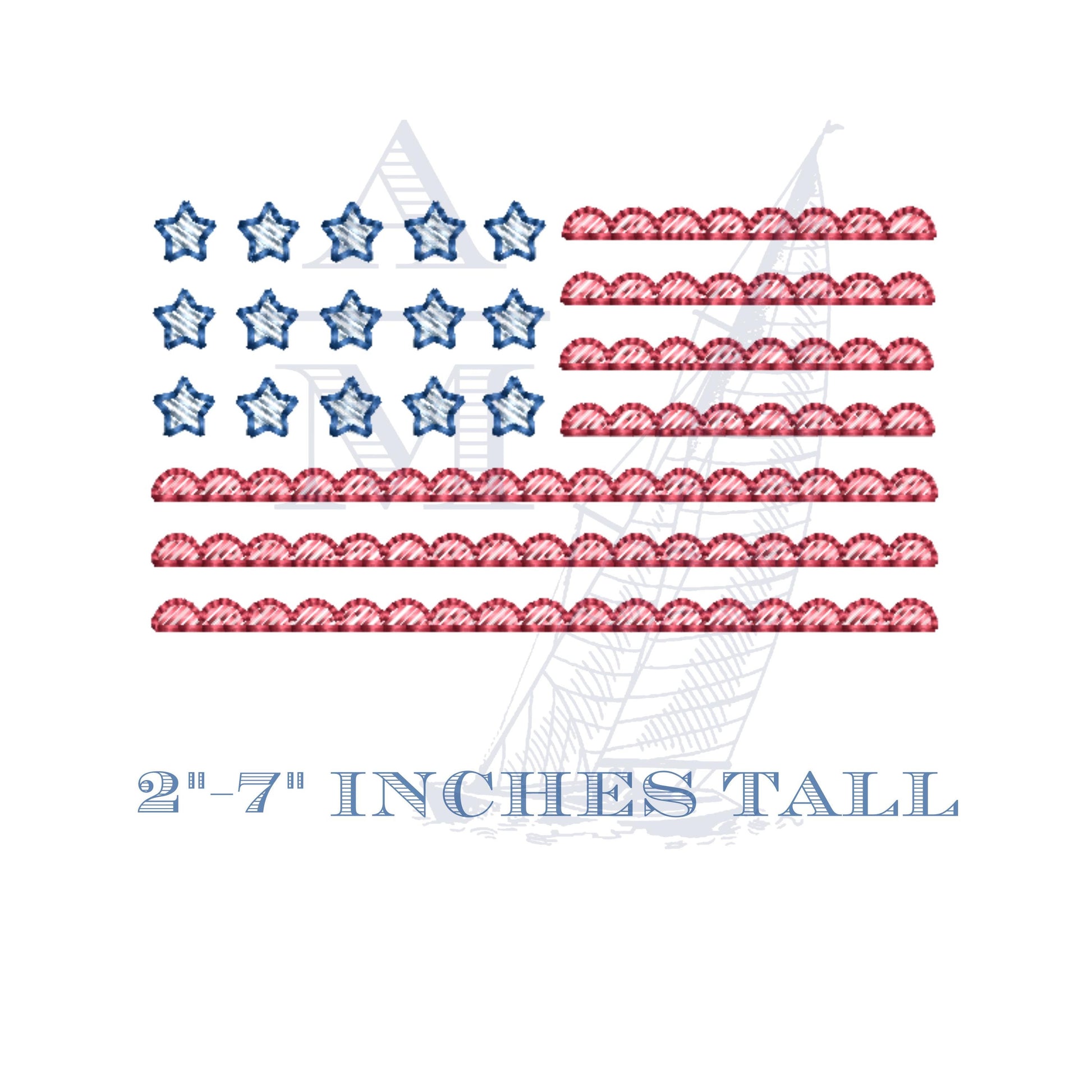 Scalloped American Flag Stars and Stripes Embroidery Design, Sketch Fill, Patriotic Machine Embroidery, 5 Sizes