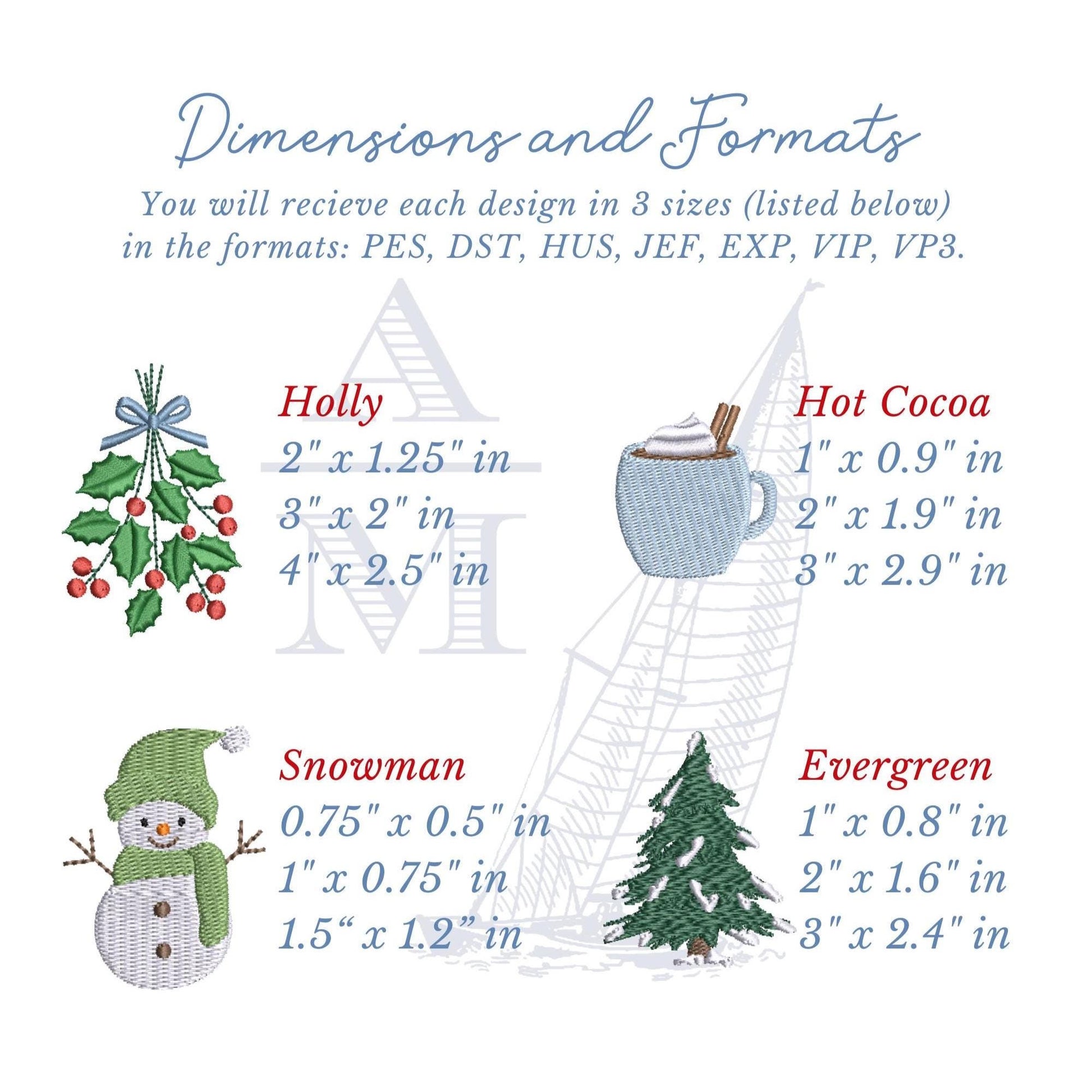 This bundle includes eight carefully curated seasonal motifs: